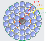 So könnte das angeordnet sein. Es würde sich ein äußerer Durchmesser von ca. 770mm ergeben, kann aber auch noch weiter auseinander gezogen werden.