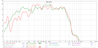 Ich habe dann den Breitbänder auf Achse in 1m Abstand gemessen. Rot ist unbeschaltet, grün ist mit Hochpass und kleinen Korrekturen im unteren Bereich: