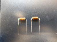 Statt der beiden 5Watt/0,22Ohm Metallbandwiderstände habe ich bei Reichelt nur axiale Drahtwiderstände bekommen. Technisch macht das keinen Unterschied, nur ist das Einlöten etwas unkomfortabel.