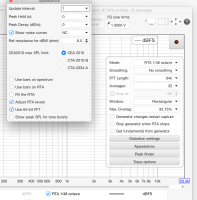 Darakon schrieb:6. Im REW-Hauptfenster "RTA"-Knopf drücken (Real Time Analyser), unter Einstellungen (Zahnrad-Knopf) auf zB 1/6 Oktave Glättungen stellen und Aufnahme drücken.