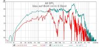 Um den gehäusebedingtenTiefbassgewinn besser sehen zu können habe ich noch mal mit angepasstem Pegel gemessen (S-Dipol gelb)