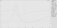 Die Impedanzmessung mit DATS sieht wie erwartet aus. Die Dips bei 800-900Hz und 4kHz sind auch in der Freiluftmessung vorhanden, kommen also nicht vom Gehäuse. Mit Dämmung gehen die Resonanzfrequenz und die Güte leicht nach unten. Die Impedanzspitzen bei den Resonanzen gehen auch nach unten.