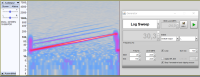 Für die Messung habe ich habe den Sweep-Generator von REW benutzt (Einstellungen im Screenshot sichtbar) und mit Audacity aufgenommen. Die 68Hz Abstimmfrequenz ist mit hellblauen Linien markiert. Die Lautstärke war so eingestellt, dass der Tieftöner bei 20Hz deutlich sichtbare Bewegungen vollführt. Vielleicht nicht +/-5mm, aber sicher +/-2,5mm. Kann man das irgendwie messen? Langzeitbelichtung mit Tele und Lineal im Bild?