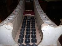 Heraus kam ein gekrümmter, auf den 2,92 m entfernen Hörplatz focussierter Zeilenstrahler mit jeweils 18 Peerles TC 9FD 18 08 (Stückpreis sagenhafte 14 €)