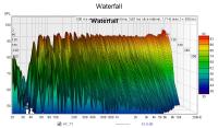 Das Wasserfalldiagramm zeigt zu 90% den Raum. Der Schallwandler schwingt innerhalb mehreren bis mehreren Dutzend (nur bei Resonanzen, bzw. BR o.ä.) ms aus. Was bis mehrere hundert ms nachschwingt ist der Diffusschall, d.h. Reflexionen im Raum. Die abwechselnden Hügel im Tieftonbereich zeigen hier wirklich wunderbar die Raummoden.