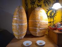 Bevor ich versuche ein Ei auf Papier zu malen, leihe ich mir im Netz ein Bild aus und bringe es mit Posterdruck auf die geplante ("richtig" schreibe ich lieber nicht) Größe. Ich habe eine Excel-Tabelle für entsprechend plattgedrückte Eier. Bei 62cm Höhe und 2cm Wandstärke komme ich auf ca. 22-24 Liter Nettovolumen.