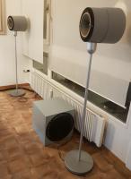 Ich hätte auch noch zwei Schallwände: diese weissen Stele, die sind hinten offen.