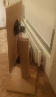 Hier zum Starten mal einfach Bilder, wie die Schallwände seit heute in meiner Küche stehen. Sie dürfen nun die ganze Nacht 10 Hz Sinus spielen, um die Teile etwas einzuwalken.