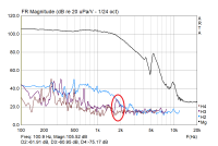 capslock schrieb:Stoneeh hat den Treiber aktiv angesteuert, also mit geringer Impedanz. Ausnotchen der 5 kHZ-Reso senkt den H3 bei 1,7 kHz von ca. 28 auf ca 23 dB, also praktisch genauso. Auch der entsprechende H2 bei 2,6 kHz geht von 23 auf 21 dB. Was ist da los?