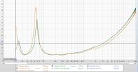mtthsmyr schrieb:Ausgehend von deiner Impedanzmessung würde ich sagen, dass bei dem Lautsprecher mit der roten Kurve das Gehäuse etwas undichter ist als das andere. Das hat nämlich genau diesen Effekt: Die Resonanzfrequenz rutscht nach oben, das Impedanzminimum geht nach oben und die Spitzen sind leicht abgesenkt.
