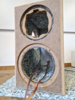In meiner Dusseligkeit habe ich Tietöner und Hochtöner andersrum angelötet als beim ersten und den HT auch noch verpolt Aber gut, dank DSP ist das ja alles kein Beinbruch, nur Gefummel. Passiert halt, wenn man spät abends bastelt wenn das Hirn den Kanal eigentlich schon voll hat.