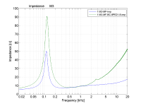 Der bessere 8" für diesen Zweck wäre eher der 8PS21 – hier mal PE vs. PS im direkten vergleich, beide auf target curve in gegebenem Gehäuse (ca. 10l CB) entzerrt: