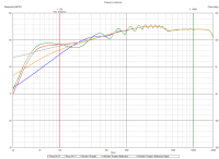 Eine Variante aus meiner Sicht ist, den Amplitudenfrequenzgang via Approximation und unterer Grenzfrequenz nach Fensterung zu ermitteln und die Frequenzen unterhalb anhand Thiele-Small (was auch in eine Übertragungsfunktion überführt werden kann) nachzubilden. Aber dafür fehlt mir gerade der Sinn, weil gleiches Ergebnis zu erwarten ist, wie mit FFT (gefenstert) und G(s) für Frequenzen niedriger FFT (gefenstert).