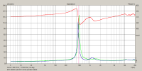 In der ersten Abbildung die Impedanz ohne Horn (blau) und mit HF94 (grün).