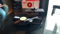 Thorens hat Schallplatten aus receycelten PET-Flaschen auf dem Stand. Sind leichter als Vinyl und auch die Herstellung soll einfacher sein als Vinylscheiben.