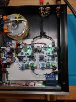 Die Transistoren erhielten Fischer Kühlkörper und erreichen so um 40 Grad, auch nach Stunden.
