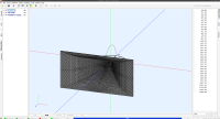 Zunächst einfach freistehend. (ABEC.SimType=2). Dabei wird auch ein rückseitiges Netz erzeugt. Akustisch sicher die härteste Bedingung, da die Einschnürung am unteren Übertragungsende am stärksten ausgeprägt ist. Man kann nun die Hornparameter so variieren, dass die Einschnürung weitgehend unterdrückt wird und ansonsten der gewünschte Abstrahlwinkel möglichst gut eingehalten wird.
