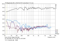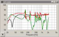 Wie ihr seht, wird der -3dB Punkt bei etwa 35 Hz liegen und es sollte dann, je nach Abstimmung der Weiche, ein Freifeld-Wirkungsgrad zwischen 82 und 85 dB (1m/2,83V) herauskommen!