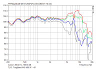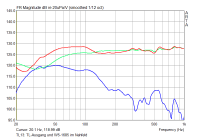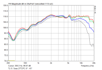 Die Spitze bei 5,5 kHz habe ich in allen Messungen (ich gehe von einer Störung des Mikrofonständers aus!), und der Abfall über 15 kHz liegt wohl an einer leicht falschen Mikrofon-Kalibrirungsdatei.