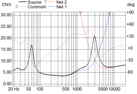 ... und noch die Impedanzen der beiden Chassis im Gehäuse: