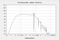 Zu dem Monacor in Verbindung mit dem genannten Modul fällt mir der geringe Wirkungsgrad etwas negativ auf. Der will halt Leistung sehen. Da gefällt mir der SP 250P in deinem Gehäuse als Bassreflexvariante abgestimmt auf 35 Hz deutlich besser. Subsonic am Modul wäre dann bei 30 Hz einzustellen und der Bassboost je nachdem was der Raum macht anpassbar bei ca 40 Hz ansetzen und nach Bedarf aufdrehen. Sind halt 94 dB statt 87. Und durch den Abfall unter 60 Hz kann man den dann gut an den Raum anpassen. Simulation angehängt.