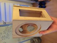 Das Gehäuse habe ich mit Scetchup entworfen und dann Fertigen lassen. leider bekomm ich die Passivmembran nur sehr schwer rein. Zu knapp berechnet.